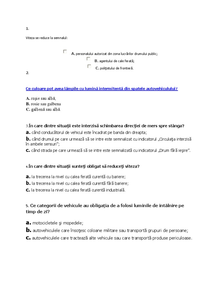în care dintre situaţii este interzisă schimbarea direcţiei de mers spre stânga. Când conducătorul de vehicul este încadrat pe rândul din stânga şi drumul are două rânduri pe sens. Când drumul pe care urmează să se intre este semnalizat cu indicatorul circulaţia interzisă în ambele sensuri. A când conducătorul de vehicul este încadrat pe rândul din stânga şi drumul are două rânduri pe sens.