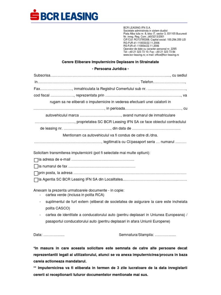 Imputernicire Auto Iesire Din Tara Persoana Juridica