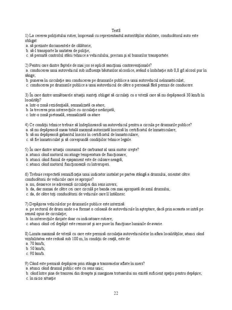 Chestionare auto drpciv categoria d explicate. A b și c. Pentru care dintre situaţiile de mai jos se dispune reţinerea permisului de conducere. Cum veţi semnaliza faptul că autovehiculul cu care circulaţi a rămas în pană pe partea carosabilă.