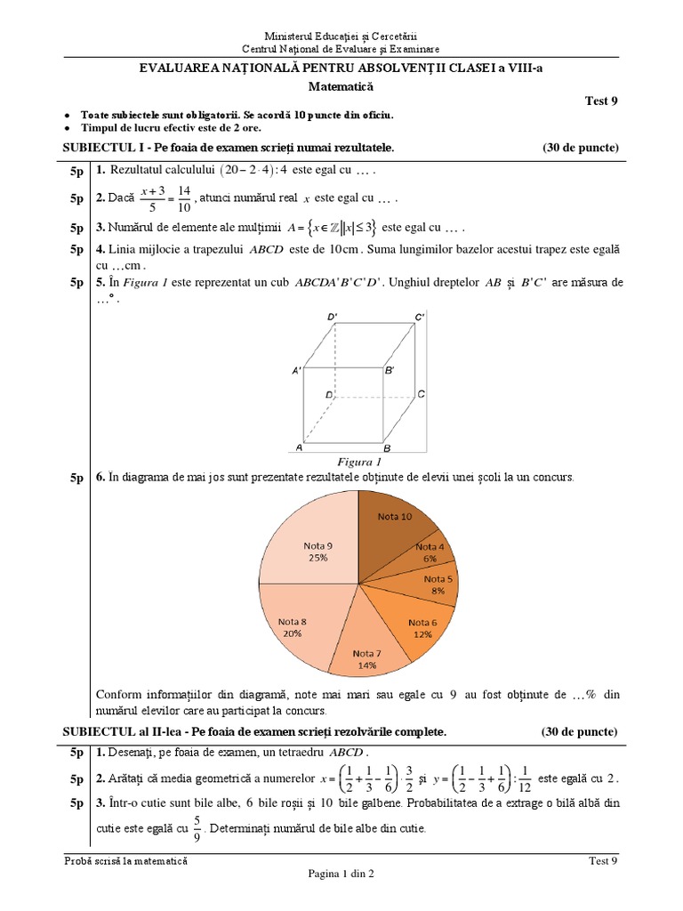 Figura 1 5p 6. In diagrama de mai jos sunt prezentate rezultatele obtinute de elevii unei clase la un concurs. Atunci p este egal cu. Are măsura de.