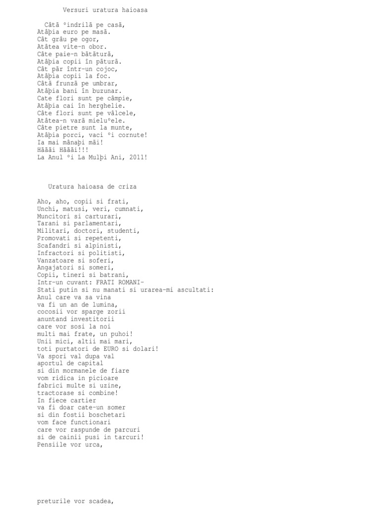 şi ne am luat cu ist clopoţel bălţat să stârnim câinii din sat c aşa i de la dumnezeu sfântu lăsat. îmbuibarea beţia privitul la tv defăimarea chipului lăsat de dumnezeu omului prin fel de fel de măşti circ petarde artificii pocnete din bici petreceri chefuri cu dansuri destrăbălate. Si ne am luat cu ist clopotel bãltat sã stârnim câinii din sat c asa i de la dumnezeu sfântu lãsat. Doamne ce sfinţi ai aşezat pe piatra mărturisirii tale şi cum nu ştim să i preţuim.