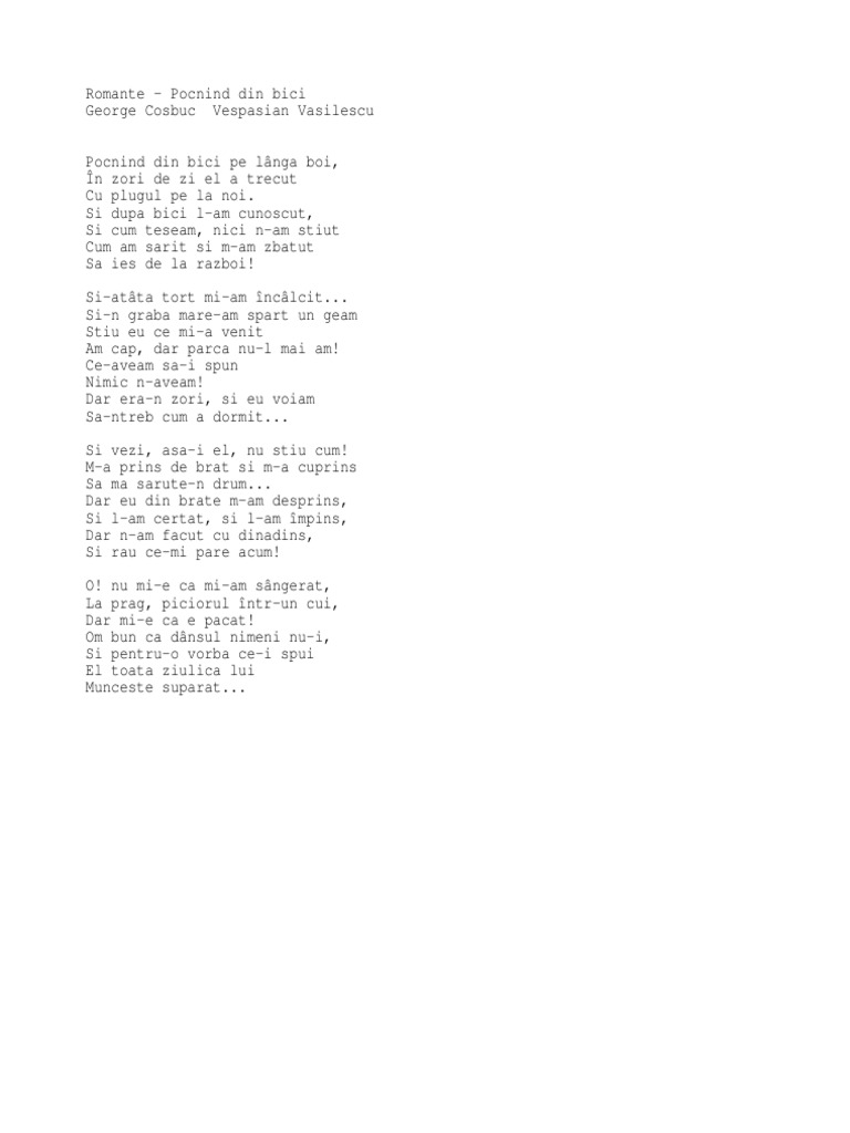 Duios geme apa n veci zbătută ca prin vis sub iaz la moară. Luna tot mai jos scoboara tot mai jos mai jos. 20 septembrie 1866 hordou comitatul bistrița năsăud azi coșbuc județul bistrița năsăud. 1823 a murit edmund cartwright inventatorul britanic al războiului de ţesut industrial n 24 04 1743.