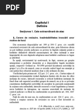 Revizuirea reprezintă o cale extraordinară de atac. 1 şi 2 admisibilitatea cererii de revizuire. Noi ne pronunțăm categoric că nu. Inadmisibilitatea cererii de revizuire pentru nedovedirea cazurilor prevazute de art.