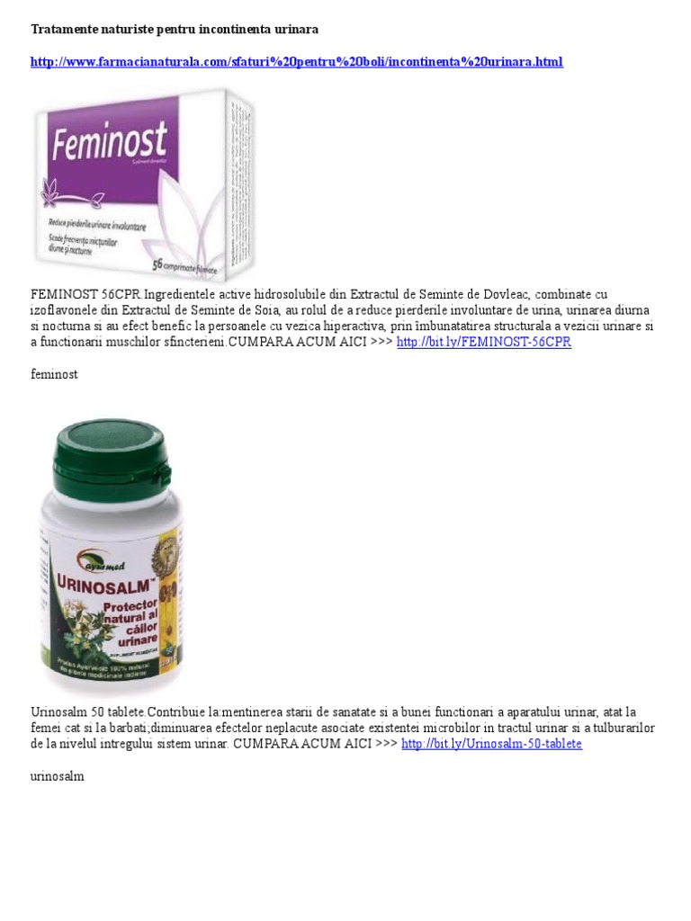 Tweet incontinenta urinara tratamente naturiste incontinenta urinara tratamente naturiste incontinenta urinara tratamente naturiste inca privita ca subiect tabu incontinenta urinara este o problema cu care se confrunta multe femei din intreaga lume mai ales dupa varsta de 50 de ani. Magazin plafar online cu o gama variata de remedii naturale. Acestea includ mişcarea zilnică anumite schimbări în stilul. Tratament medical tratamente pentru femei.