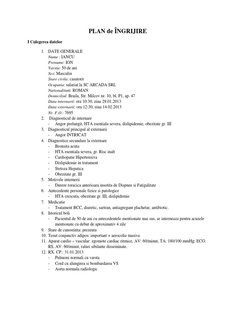 Plan de nursing sau de ingrijire 9 pneumologie si nursing specific 11 politici sociale si de sănătate 11. Podărăscu 2019 elaborarea planului de îngrijire a pacientului cu infarct miocardic acut suport curs dr. Share embed plan de îngrijire al unui pacient cu. Exploziile instantanee de sudoratie rece sub forma unor valuri de transpiratie semnificative cantitativ ca dupa un efort fizic intens pot fi atribuite stresului si emotiilor puternice.
