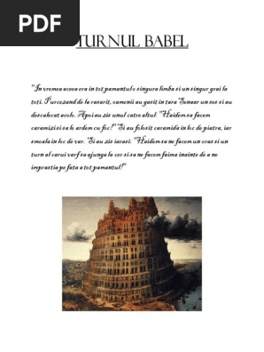 Informatii despre turnul babel. Turnul babel pictură de pieter bruegel cel bătrân 1563. Turnul babel piramide stupa legenda spune ca oamenii au vrut sa construiasca un turn care sa ajunga la cer la dumnezeu. O tăbliţă de piatră descoperită acum 100 de ani în babilon poate confirma existența turnului babel aşa cum ne spune şi biblia. 3 şi au început să vorbească în alte limbi glossai v.