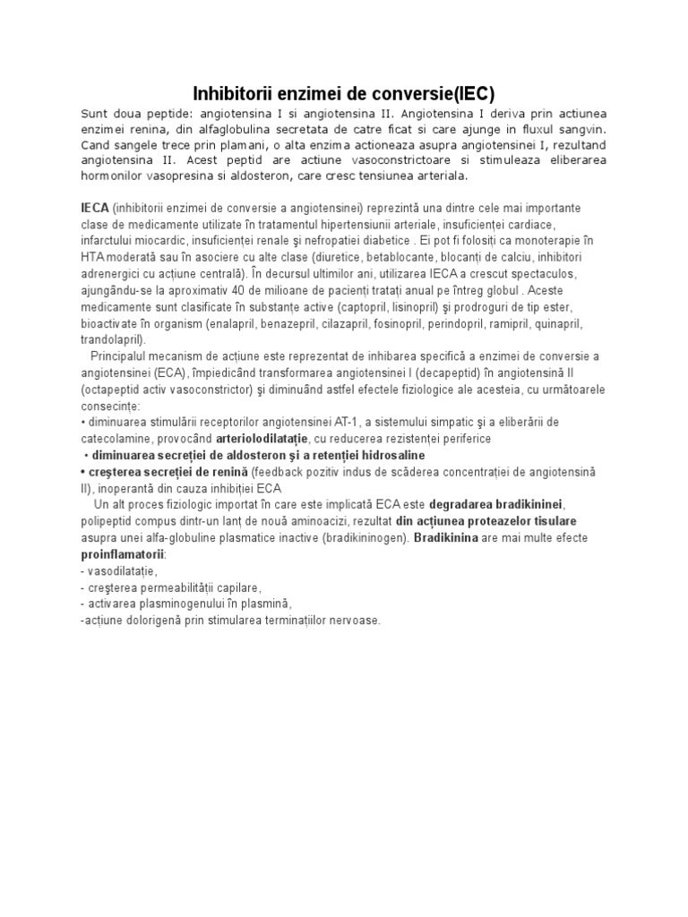 Inhibitori ai enzimei de conversie. Hipertensiunea arterială esențială hta reprezintă factorul de risc principal și modificabil răspunzător de apariția bolilor cardiovasculare estimate la aproximativ 9 milioane de decese anual. Inhibitorii enzimei de conversie a angiotensinei ieca și blocanții receptorilor de. Dacă la 6 ore de la administrare rămâne asimptomatic pacientul este considerat stabil. în ciuda avantajelor terapeutice hta este controlată doar în 13 dintre cazuri la nivel global.