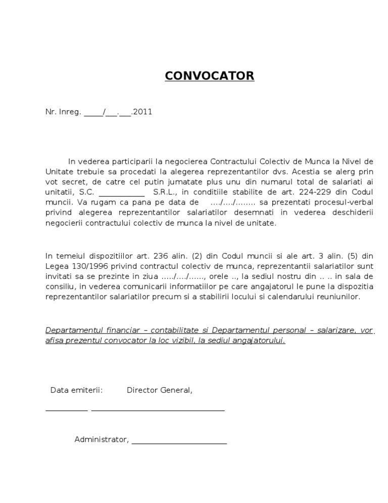 Initierea Negocierii Contractului Colectiv De Munca Model