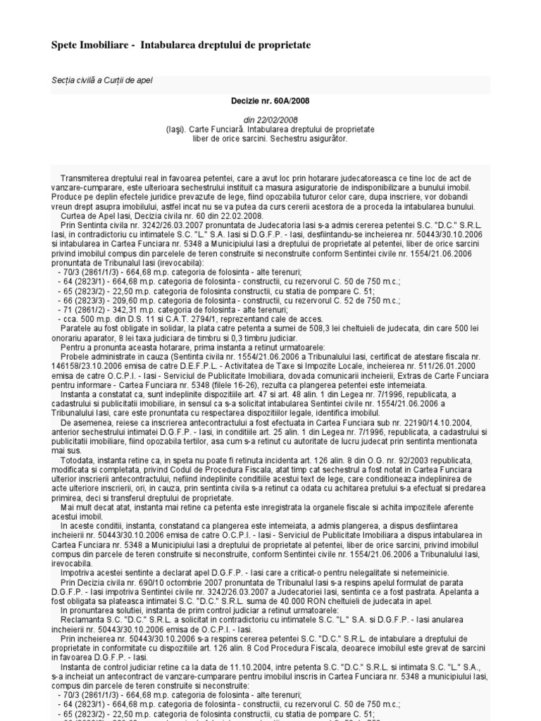 Buna ziua va contactez in speranta ca ma puteti ajuta. Folosiți calculatorul de taxe notariale care vă calculează automat și taxa de intabulare. Prin care solicita instantei sa dispuna intabularea in c f. 22 din legea nr.