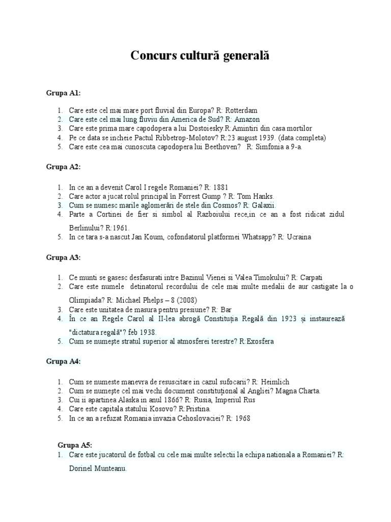 Intrebari de cultura generala istorie. Global anual se cheltuiesc 13 miliarde pentru sanatate si nutritie. Cui nu i plac întrebările de cultură generală menite să i pună mintea la încercare. De camelia diaconu miercuri 17 iulie 2019 13 43 ultimul update miercuri 21 octombrie 2020 11 44. Aprilie 1896 10 octombrie 1910.