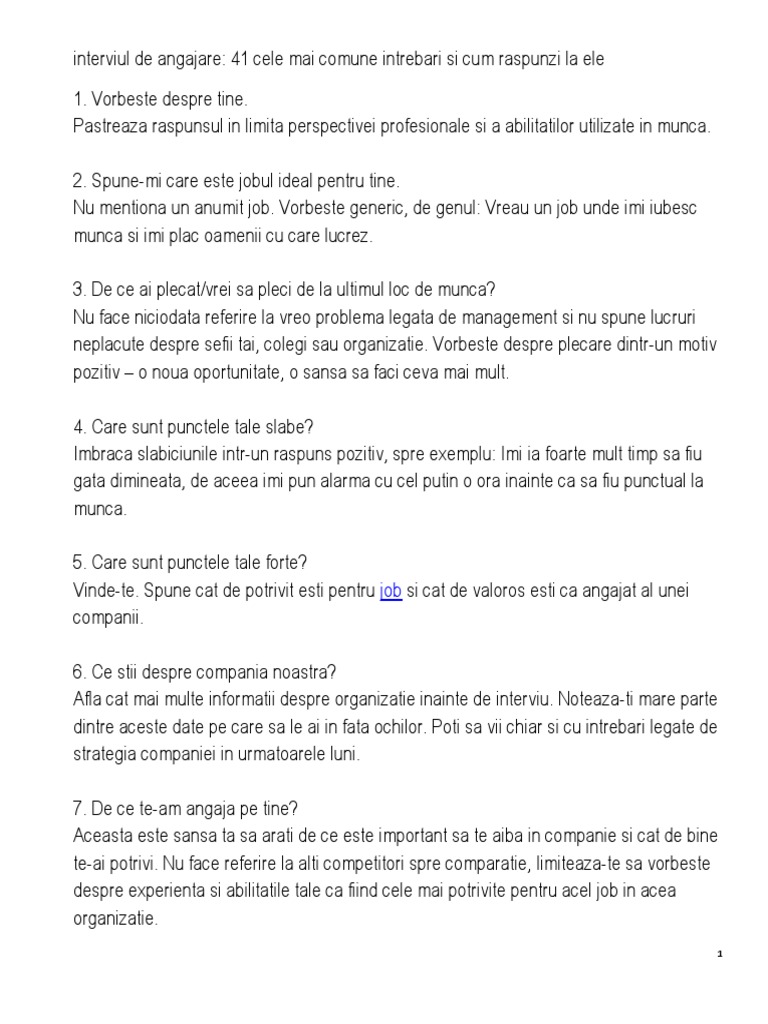 Scopul lor este să ți scoată la iveală rapid personalitatea și să ți vadă reacția atunci când ești pus într o situație neașteptată. înainte să mergi la un interviu de angajare ar trebui să te gândești la ce intrebari interviu pregătesc recrutorii. Nici o instituţie sau persoană site uri instituţii mass media firme de monitorizare nu poate reproduce integral scrierile publicistice purtătoare de drepturi de autor. Intrebari interviu care te ajută să evaluezi candidatul.