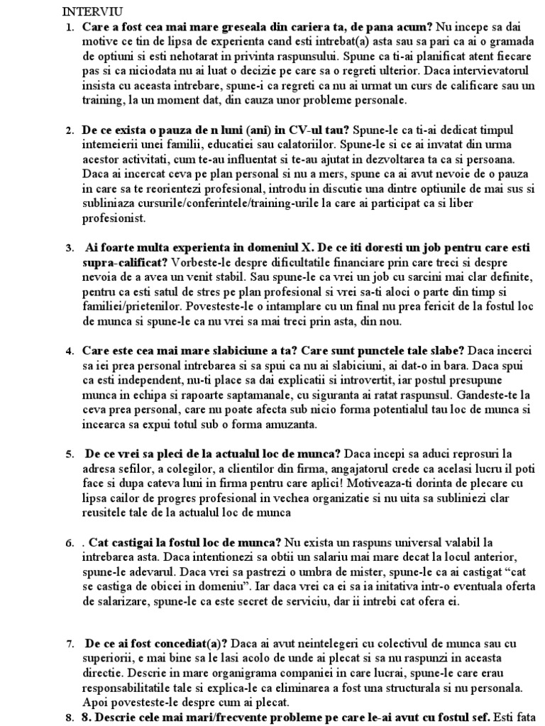 Tu cum te pregatesti de un interviu de angajare. Răspunsurile pe care le dai într un interviu de angajare s ar putea să depindă de jobul pentru care aplici sau de compania în cauză. Cum ai rezolvat un conflict la locul de munca. Doresc sa te felicit pentru initiativa.