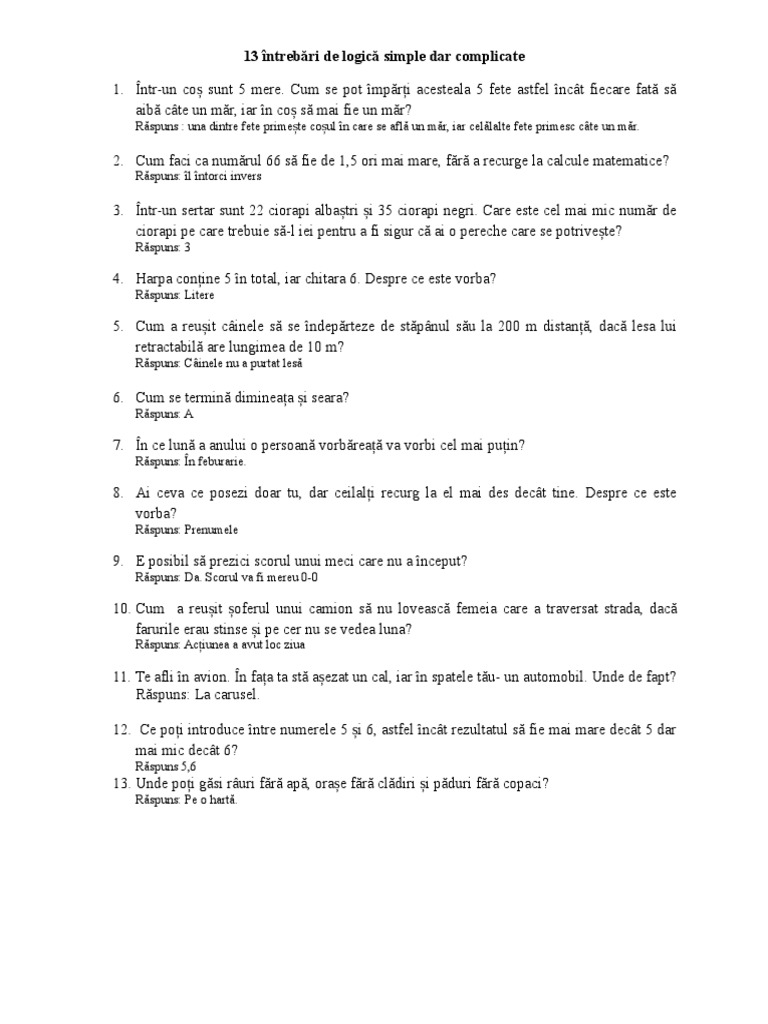 Intrebari Simple Raspunsuri Complicate
