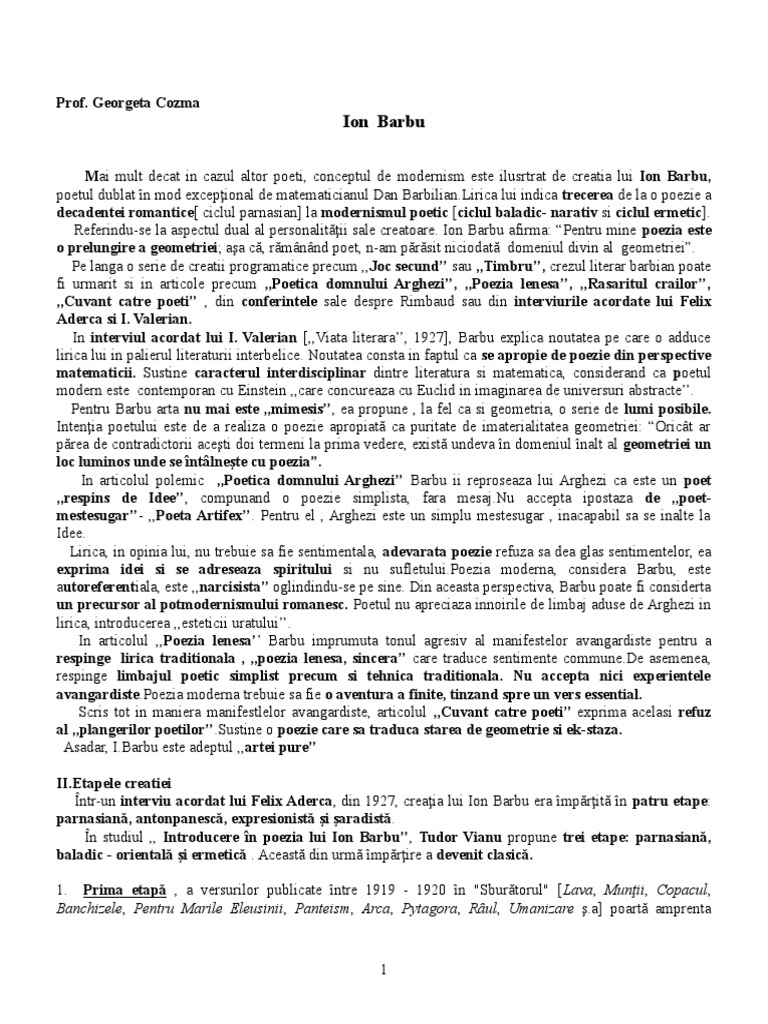 Ion barbu poet şi matematician mărturisire. Este un reprezentant stralucit al modernismului poet interbelic. Subiecte bac 2018 romana la subiectul al iii a elevii au avut genul liric. Se scutură întreaga ei grea pieptănătură.