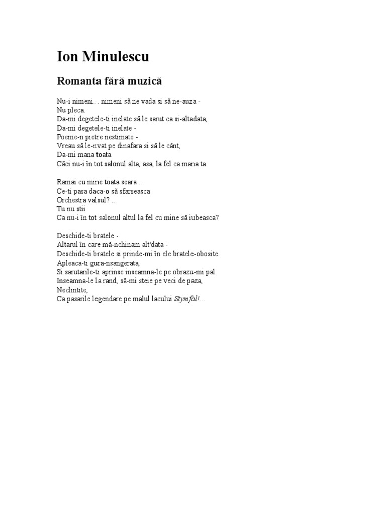 Romanian poetry ion minulescu poezii românesti. Poeziile sale de dragoste prezintă dragostea într o manieră deosebită. 11 aprilie 1944 bucurești a fost un poet și prozator român reprezentant important al simbolismului românesc ion minulescu este numit director general al artelor în 1922. Un cântec trist adus din alte tari de niste pasari albe calatoare.
