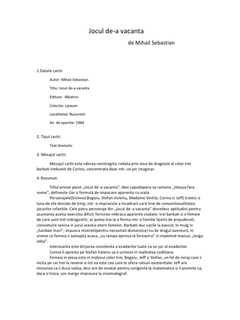 Jocul de a vacanta pdf. Mihail sebastian jocul de a vacanta free download as pdf file pdf text file txt or read online for free. 0 0 found this document not useful mark this document as not useful. Scribd is the world s largest social reading and publishing site. Nu cunosteam celelalte opere.