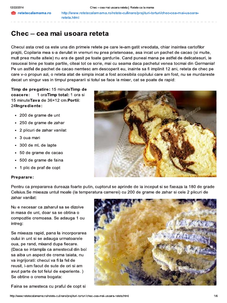 La cate grade se coace checul. La început temperatura nu trebuie să fie mare pentru a nu se arde cozonacul la exterior. 285 din 2004 prin oug nr. Checul este copt când scobitoarea introdusă în mijlocul lui este uscată când o scoateţi. In niciun caz nu deschideti usa cuptorului in primele 30 35 de minute.