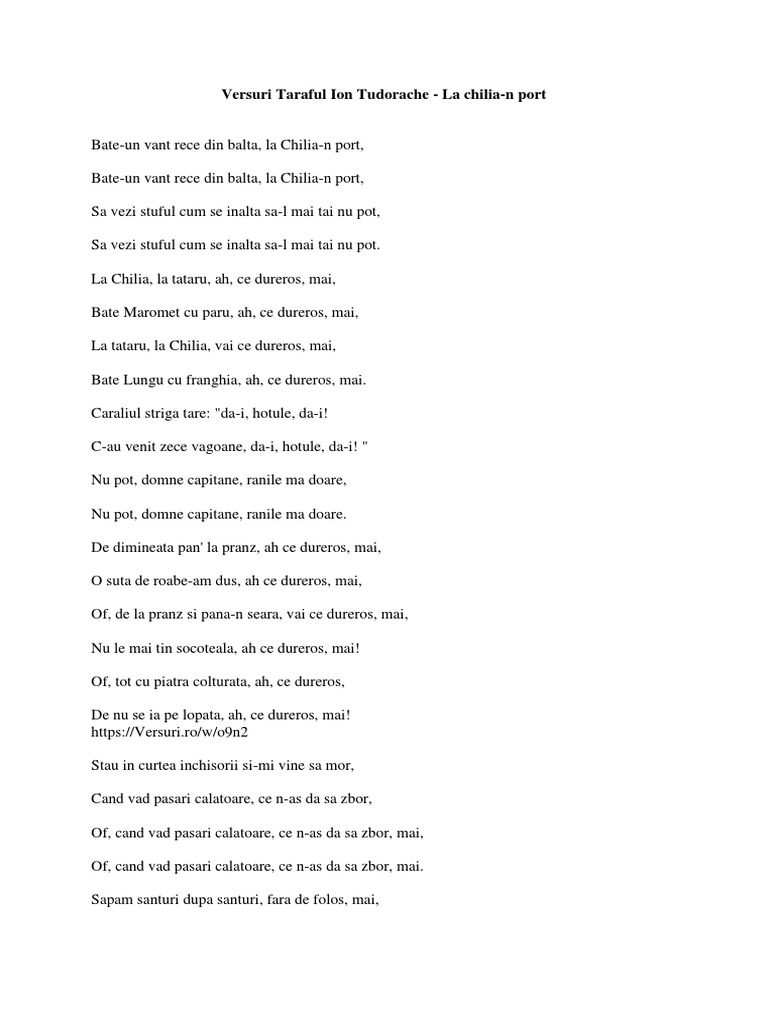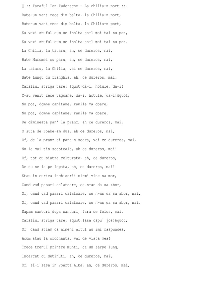 La chilia n port versuri. Ionel tudorache ionel tudorache la chilia n port versuri. Bate un vant rece din balta la chilia n port. Versuri la chilia n port de taraful ion tudorache. Bate un vânt rece din baltă la chilia n port bate un vânt rece din.