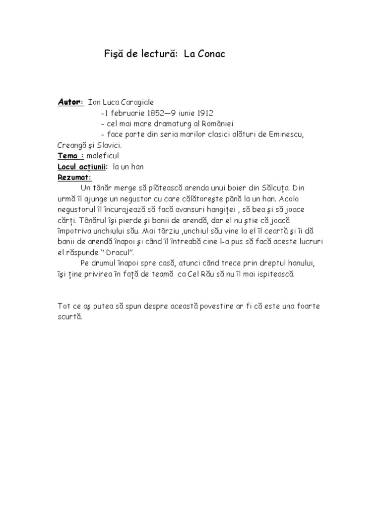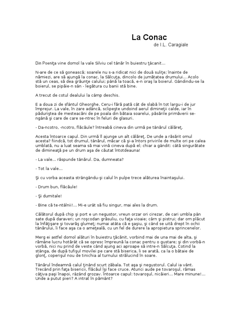 La conac ion luca caragiale. Soarele nu s a ridicat nici de doua sulite. Citeste povestea la conac de ion luca caragiale. înainte de nămiezi are să ajungă la conac la sălcuţa dincolo de jumătatea drumului. Ion luca caragiale la conac n are de ce sa goneasca.
