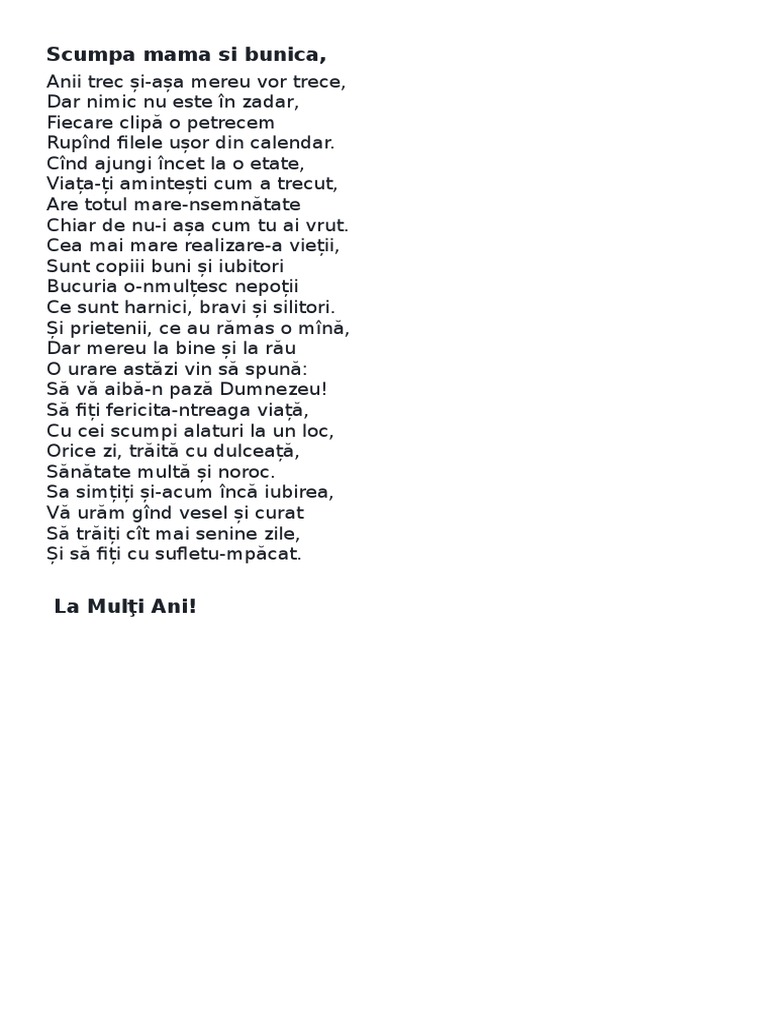 Ești cel mai important și scump om pentru noi din tot universul. La multi ani scumpa mama si bunica sat hijdieni glodeni. Esti ca un parfum in viata mea tu ma îmbrățișezi si imi dai forta sa merg mai departe prin viata iti multumesc pentru tot. La multi ani scumpa mea bunica.